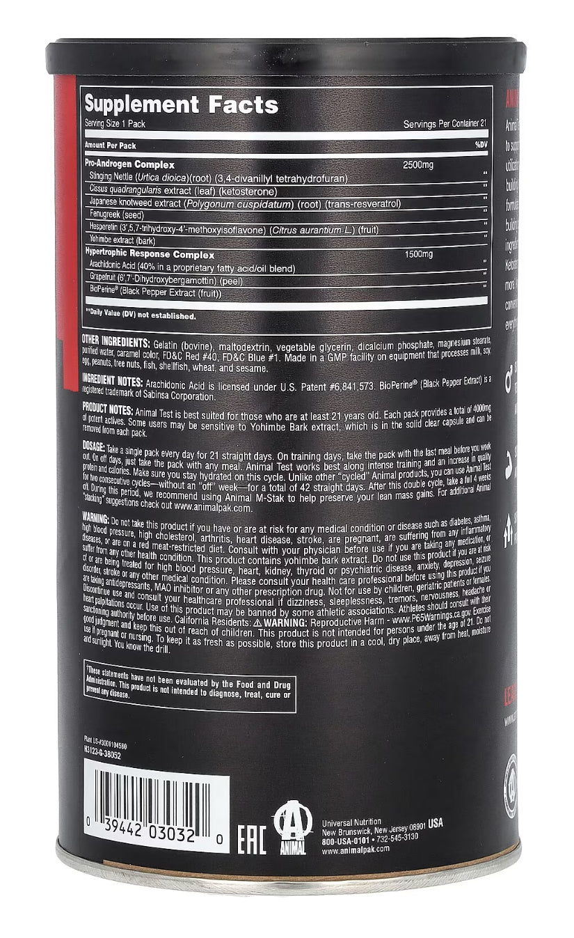 With advanced muscle building complexes containing key ingredients like Arachidonic Acid, Ketosterones, Trans-Resveratrol and more, Animal Test will have you building massive muscle in no time.